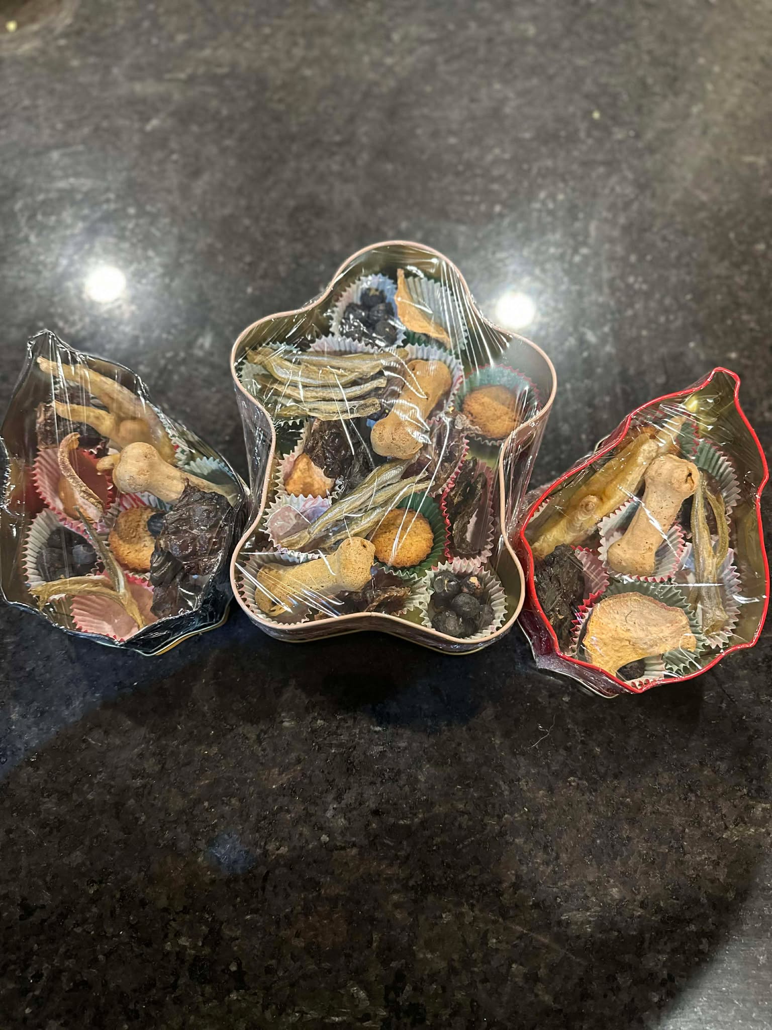 Celebrate the season with Paw La La La La Pawty Mixes—festive tray tins packed with your pup's favorite treats. Each mix features our signature blend of baked and dehydrated dog treats, carefully curated to deliver variety and tail-wagging satisfaction. Perfect for holiday gatherings, training rewards, or simply spoiling your furry friend, these charming tins make gift-giving easy. Give your dog the pawty they deserve with every delicious bite.